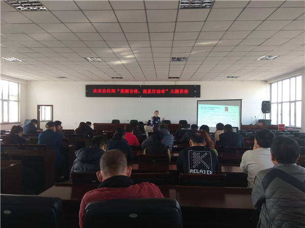 10月27日上午,在龙井市农业农村局四楼会议室举办“美丽吉林,我是行动者”主题讲座,农机总站全体工作人员参加此讲座。