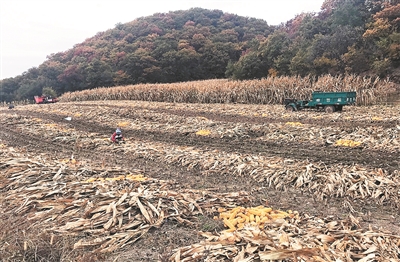 时下,正值秋收时节,农村一片丰收气象。这是铁东区石岭镇胡家店村村民正在秋收。(四平日报 董众赢摄)