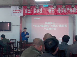 4月2日,奇瑞重工吉林分公司与其双辽指定经销商双辽市雨丰农机有限责任公司,在双辽市政府宾馆召开了农机补贴产品推介会。双辽市的农机大户、农机专业合作社负责人、农民共计200多人参加了推介会。推介会上,奇瑞重工吉林分公司的工作人员详细介绍了奇瑞重工的概况及农机产品种类、性能等情况。双辽市农机户代表介绍了使用奇瑞重工生产的玉米收获机的情况及取得良好经济效益的情况,对奇瑞的产品质量、售后服务、机械性能非常满意,非常认可。之后,大家参观了奇瑞重工生产的“谷神”系列玉米收获机及“耕王”系列拖拉机。广大农民对奇瑞重工的玉米收获机及拖拉机的性能、价位等情况有了比较深入的了解。推介会现场场面热烈,农民购机热情高涨。现场就有4位农民预交了购机款,订购了4台大型玉米收获机。推介会起到了宣传、推广的积极作用,取得了良好效果。