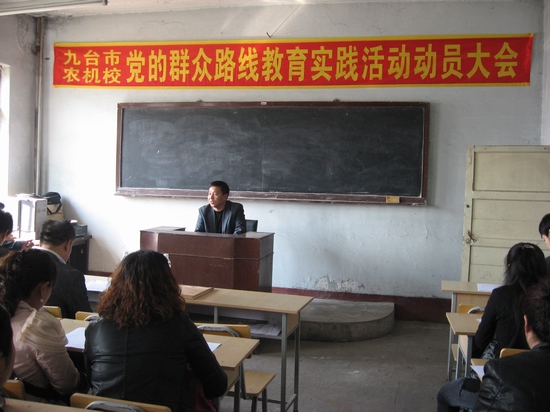 2014年4月22日根据农机局党委统一部署,九台市农业机械化学校召开深入开展党的群众路线教育实践活动动员大会。这次会议主要任务是:学习贯彻中央、省、长春市及九台市农机局党的群众路线教育实践活动会议精神,对农机校深入开展党的路线教育实践活动进行动员部署。