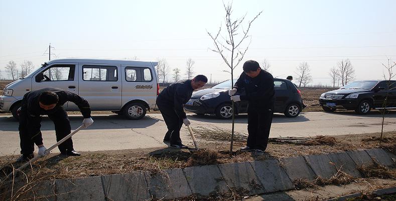 全体干部职工你一锹、我一铲,你扶树、我填土,挥洒着汗水把一颗颗刚长出嫩芽的树苗植入道路两旁,看着一颗颗树苗在风中随风摇曳,大家心里都由衷的感到喜悦。
