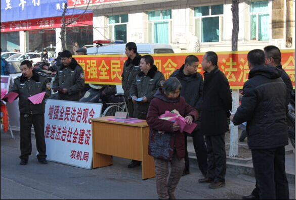 12月4日,洮南市农机局组织开展了“增强全民法制观念,推进法治社会建设”的法律宣传活动,以迎接全国首个宪法日。农机局通过发放法制宣传手册、散发法制宣传单的形式,帮助广大群众增强法治意识,引导群众依照宪法和法律行使权利、履行义务,通过法律途径解决矛盾纠纷,维护合法权益,促进社会和谐。 |