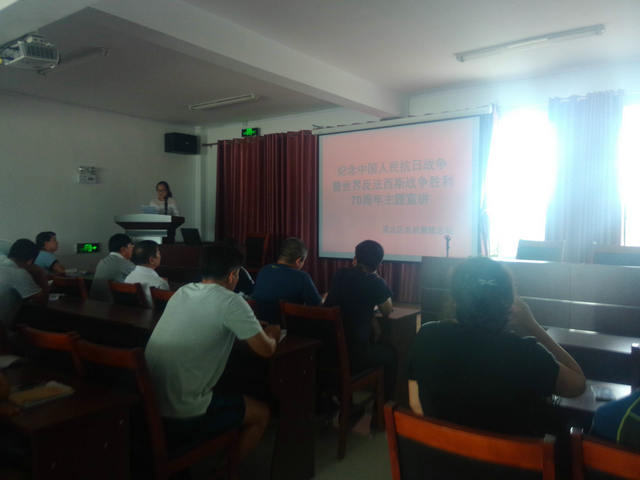 7月31日下午,农机管理总站为纪念中国人民抗日战争暨世界反法西斯战争胜利70周年,举办了以“勿忘国耻 、圆梦中国”为主题的宣讲活动。通过此次宣讲,进一步激发了农机系统广大党员干部的爱国主义情感,达到了深刻铭记历史、缅怀先烈、珍视和平、警示后人、凝聚团结力量的目的。