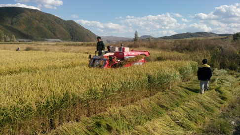 图们市农机总站2015年10月23日在月晴镇杰满村召开水稻收割现场会,参加现场会的有合作社、农场、水稻种植大户。在现场演示的有全喂入式、半喂入式水稻收割机,演示水稻收割及收割后稻秆的余粒情况,对全喂入及半喂入水稻收割机的对比有了进一步的了解与全面认识,农民亲自到稻田里查看水稻掉粒及稻秆的损耗,有了更直观的认可。在现场会上同时对农民进行收割机操作现场培训,对农民在操作收割机进程中出现的问题进行现场解答。通过此次演示,农民对水稻的种植从种到收的机械化作业,有更好的理解与购买欲望。